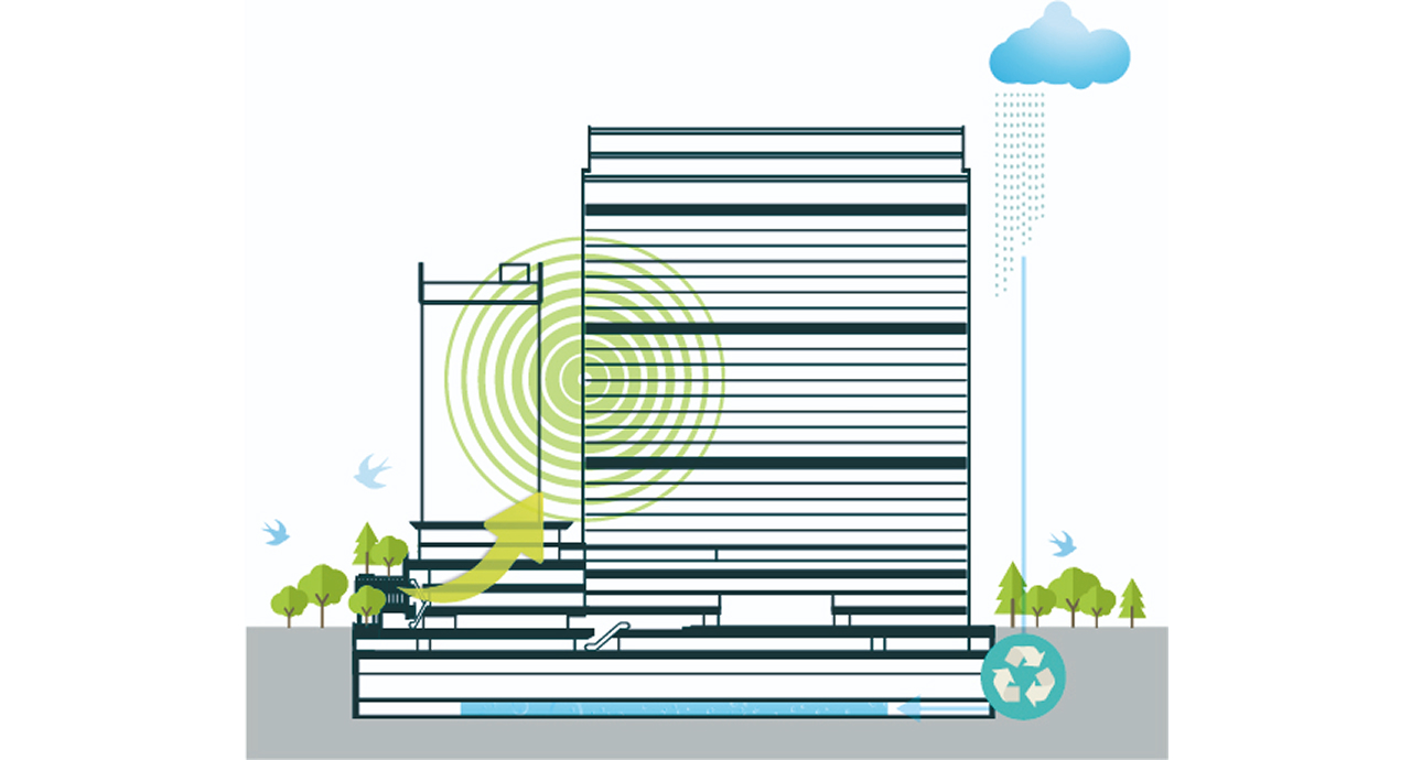 鉃鋼ビルディングは2015年10月の竣工以前より、「人・街・時をつなぐ」をビル開発のコンセプトに掲げ、以来、環境負荷低減・快適性向上・防災対応・地域との連携などに継続して取り組んできました。